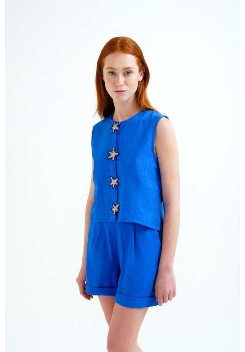 Top 100% algodón azul marino con aplique de estrellas