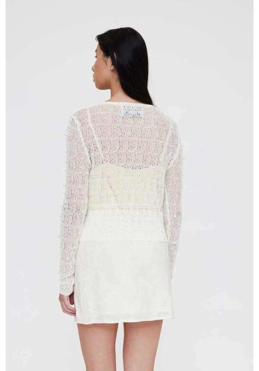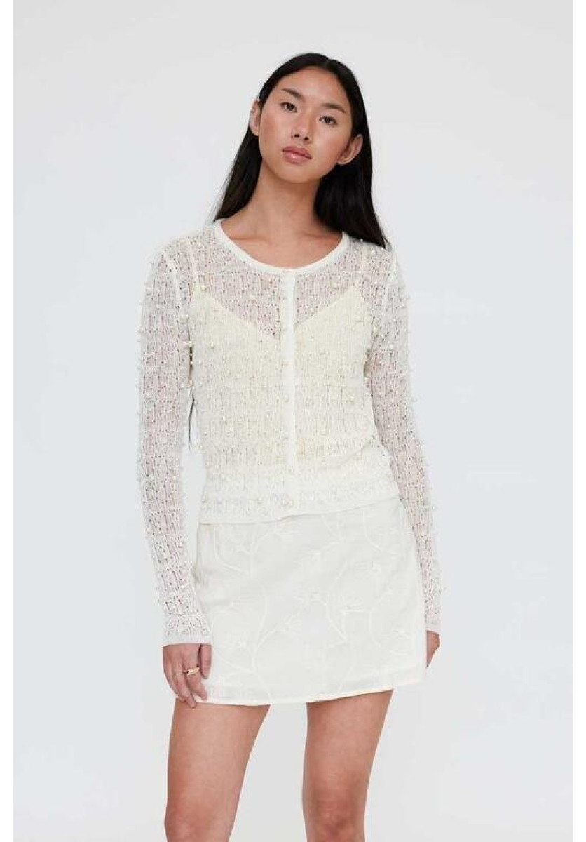 Cárdigan punto calado blanco con perlas