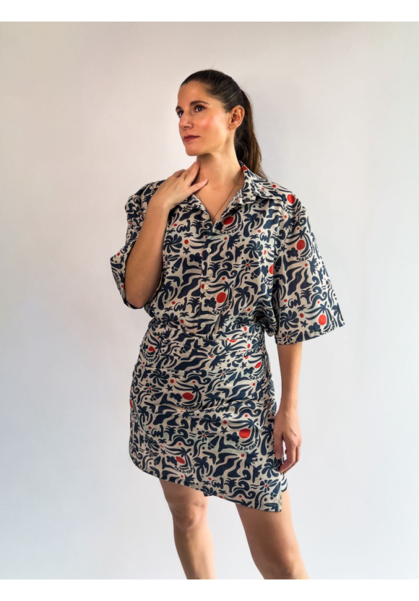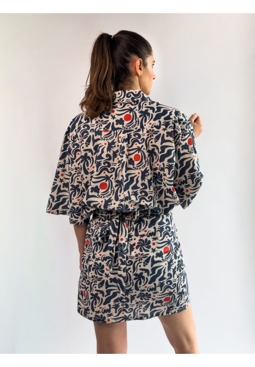 Pareo amplio de talla única. Medidas de la modelo: altura 170cm, caderas 102cm.